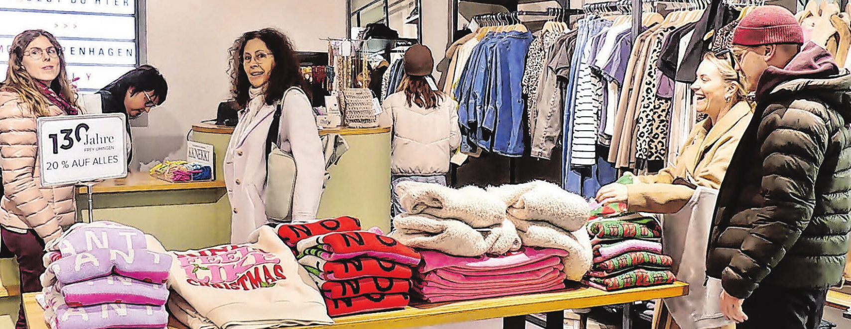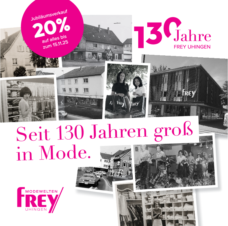 2012 ging mit dem ältesten Sohn Simon Frey die 5. Generation an den Start, drei Jahre später als weiterer Geschäftsführer. Heute leitet der 40-Jährige gemeinsam mit seinen Eltern Beate und Rainer das Unternehmen – das übrigens jede Woche 58 Stunden geöffnet hat. „Ich bin stolz auf meine Familie. Durch deren unermüdlichen Einsatz haben sie immer ein bisschen mehr möglich gemacht, als gedacht war. Und ich bin stolz auf unsere treuen Mitarbeiterinnen und Mitarbeiter, ohne deren Verbundenheit zu Frey der Erfolg nicht möglich wäre“, bekräftigt Simon Frey. Beim großen Umbau 2017 wurde die Fläche des Haupthauses in der Stuttgarter Straße 1 erweitert und ein separates Haus für Herrenmode eröffnet. Begonnen vor 130 Jahren auf 40 m² sind es nun insgesamt 1100 Quadratmeter und 30 Mitarbeiterinnen, darunter zwei Auszubildende, einer davon männlich. Sabine Ackermann