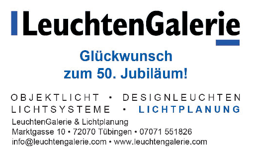 Zudem gibt es einen Jubiläumsflyer mit noch weiteren Aktionsangeboten. Das gesamte Team der Alten Kunst freut sich darauf, mit vielen bekannten und neuen Gästen auf die kommenden 50 Jahre anzustoßen. bru