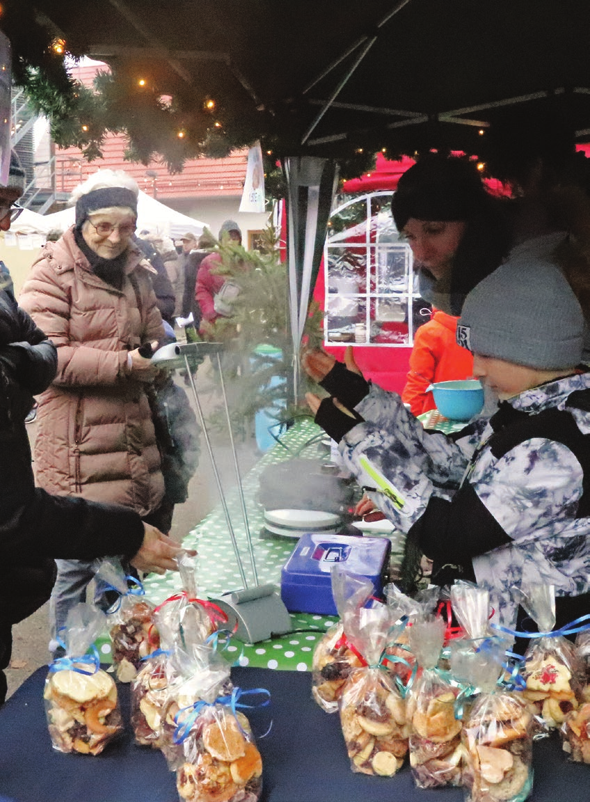 Da stürzt man sich doch, selbst wenn es voll ist, gerne ins Getümmel und wartet geduldig, bis man genauer in Augenschein nehmen kann, was an den einzelnen Ständen geboten wird. Allein die Mühe, die sich die unzähligen Vereinsmitglieder, Familien und Freunde gemacht haben, ist es Wert, betrachtet zu werden. Der Duft von Tannenzweigen tut sein Bestes dazu und wird höchstens getoppt von Schupfnudeldampf und dem verführerischen Duft von roten Würsten, Langosch, Gulaschsuppe und Glühwein.