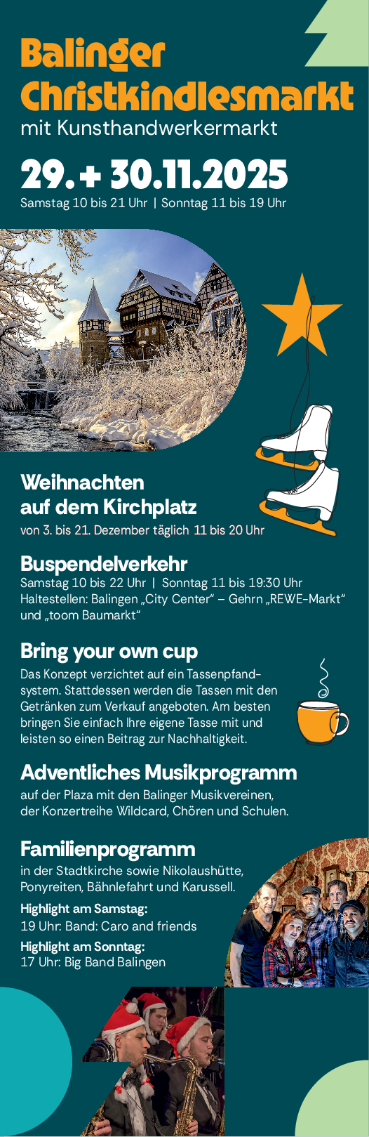 Was wäre ein Advents- oder Weihnachtsmarkt ohne Musik? Besonders anrührend sind kleine Ensembles, die die Schritte der Passanten wie von selbst ausbremsen, die mit weihnachtlichen Weisen verzaubern. Was auf keinem Weihnachtsmarkt fehlen darf, sind die Kinder, die sich trauen, mit ihren Flöten, Geigen, Celli, Saxophonen oder Trompeten zum ersten Mal vor Publikum zu spielen. Dabei dürfen auch ein paar Töne daneben gehen.