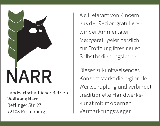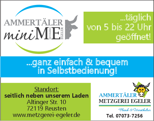 In Reusten bietet die Metzgerei Egeler das Große jetzt auch im Kleinen an. Denn es gibt den neuen Ammertäler miniME, eine kompakte, aber voll ausgestattete Version des großen Metzgereiladens mit zahlreichen Produkten des täglichen Bedarfs und deutlich längeren Öffnungszeiten.