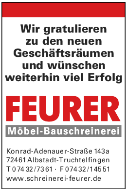 „Der Wechsel von Tailfingen nach Ebingen Mitte dieses Jahres in den Ehestetter Weg 17 war eine zukunftsweisende Investition“, so Thorsten Spörl (Leiter der Niederlassung). Für die Kunden sei dies der richtige und vorteilhafte Schritt, zumal nach erfolgter Umbau-, Anbau- und Umzugszeit eine Filiale mit größerer und modernerer Ausstellungsfläche mitsamt Büroräumen und Werkstatt entstanden sei.