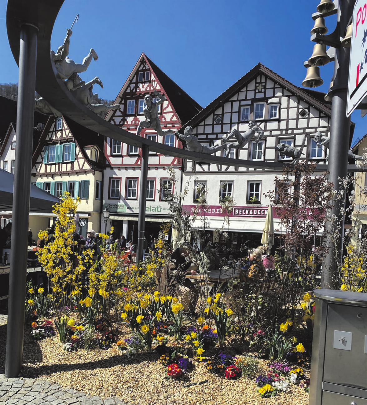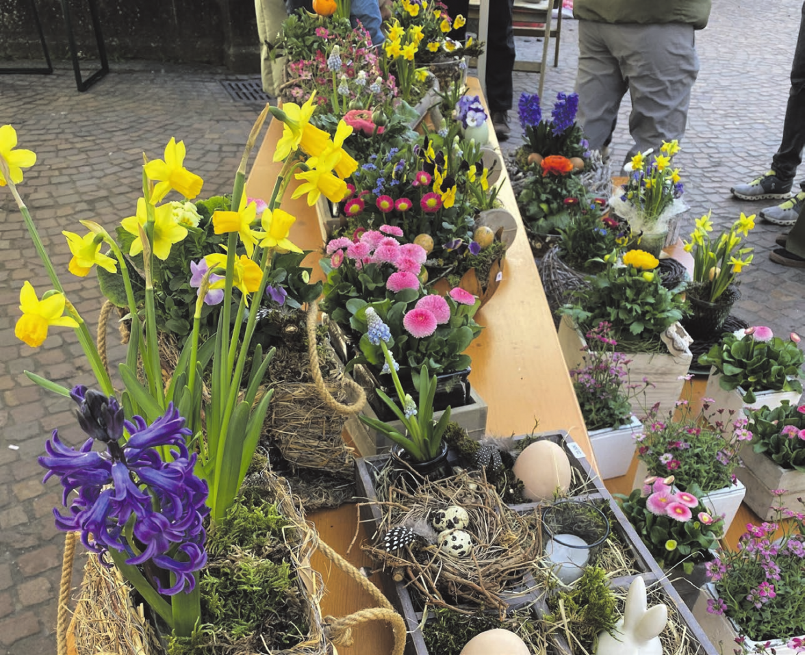Der Frühling hält Einzug in Bad Urach! Der in Frühlingsfarben leuchtende, von den Stadtgärtnern frisch eingerichtete „Osterfokus“ schmückt einladend den Marktplatz für das erste Bad Uracher „Outdoor-Event“ des Jahres: den vom Handels- und Gewerbeverein Bad Urach aktiv e. V. organisierten verkaufsoffenen Sonntag mit Bauernmarkt unter dem Motto „Bad Urach blüht auf“. Sehr willkommener Veranstaltungspartner ist in diesem Jahr die „Gartenschau Bad Urach 2027“.