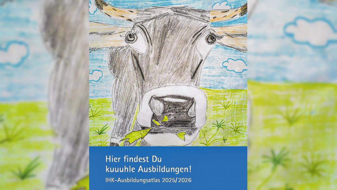 Das Titelbild kommt in diesem Jahr von Samira Schempp, Schülerin der Burgschule Meßstetten. Ihr Spruch „Hier findest du kuuuhle Ausbildungen“, natürlich mit einem passenden Kuh-Motiv, überzeugte die Jury beim Coverwettbewerb der IHK. pm