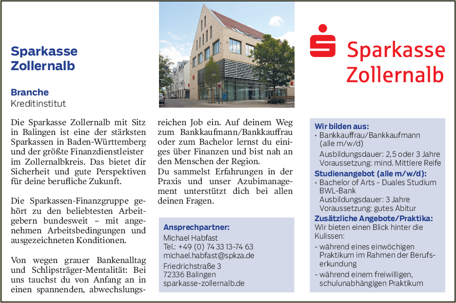 Damit Schulabgängern das etwas leichter fällt, hat die Wirtschaftsförderungsgesellschaft für den Zollernalbkreis mbH (WFG) einen kurzen Leitfaden erstellt. Darin findet man Informationen darüber, was bei der Berufsorientierung wichtig ist, worauf es bei einer Bewerbung ankommt sowie nützliche Links zur weiteren Recherche.