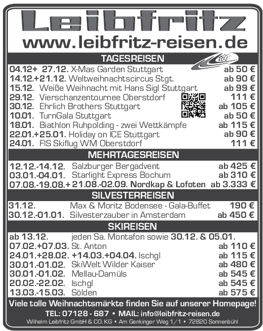 Auch die „reiferen Semester“ zieht es im Januar in die Berge: Am 25. Januar startet ein Bus zur Skiflug-Weltmeisterschaft in Oberstdorf. An der legendären Heini-Klopfer-Skiflugschanze misst sich die internationale Elite der Springer. Umrahmt von der imposanten Kulisse des Allgäus erleben Besucher hautnah, wie sich Mut, Eleganz und Schwerkraft zu einem Gänsehautmoment vereinen – begleitet von tosendem Applaus und echtem Herzklopfen.