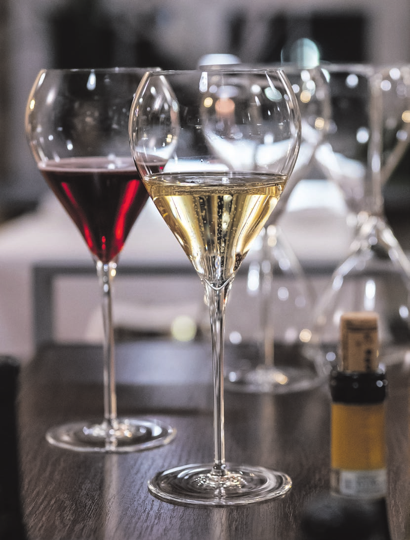Der Auftakt ist schlicht, aber edel: Aus der ältesten Sektmanufaktur Deutschlands, Kessler in Esslingen, stammt der Sekt aus der ChardonnayTraube, den Restaurantleiter Mathias Töre als Aperitif einschenkt. Die alkoholfreie Alternative: Ein rotfruchtiger Prisecco des Schlater Exportschlagers, der Manufaktur Jörg Geiger, der mit Äpfeln von der Streuobstwiese, roten Beeren, Quitte und feinstem Aroma überzeugt.