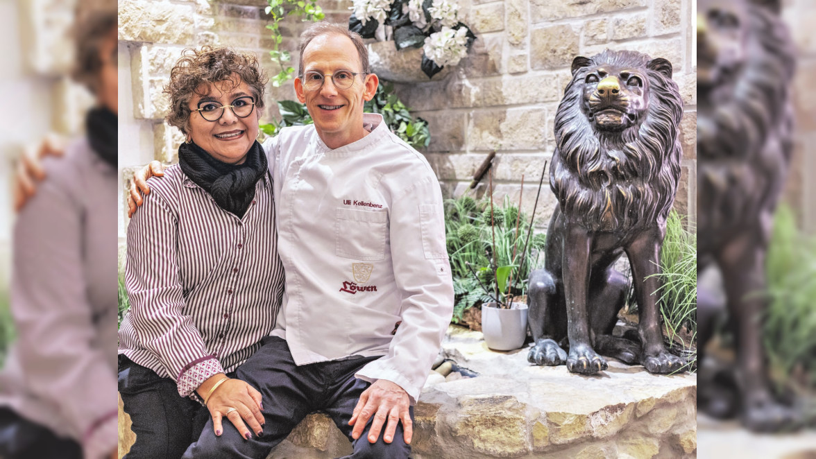2003 übernahm Ulli Kellenbenz in fünfter Generation den Löwen. Gemeinsam mit Küchenchef Uwe Schmidt, Restaurantleiter Lukas Jonkski und dem professionellen Löwen-Team verwöhnt das Inhaber-Ehepaar Kattya und Ulli Kellenbenz die Gäste mit einer erlesenen Auswahl an traditionellen und internationalen Spezialitäten. Das Besondere am Löwen: Was Speisen, Geschmack und Aromen angeht, da schaut die Peruanerin Kattya Kellenbenz bewusst über den Tellerrand hinaus. Ihre ausgesuchten Köstlichkeiten aus den Anden werden dabei kreativ in klassisch-schwäbische Gerichte integriert. „Und da legen wir großen Wert auf saisonale, regionale und frische Lebensmittel und Zutaten – ganz ohne künstliche Geschmacksverstärker“, betont Küchenchef Ulli Kellenbenz, der ambitioniert, geradlinig und mit Leidenschaft sein Wissen über die gehobene Kochkunst an aktuell drei Azubis weitergibt.