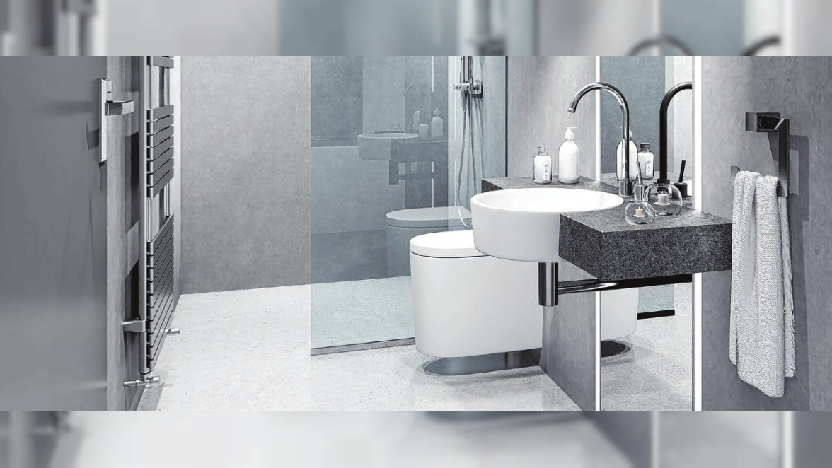 Aber auch als Glasblende für die WC-Spülung oder eigentlich unspektakuläre Fugenmassen macht Blau mächtig Wirbel im Badezimmer.