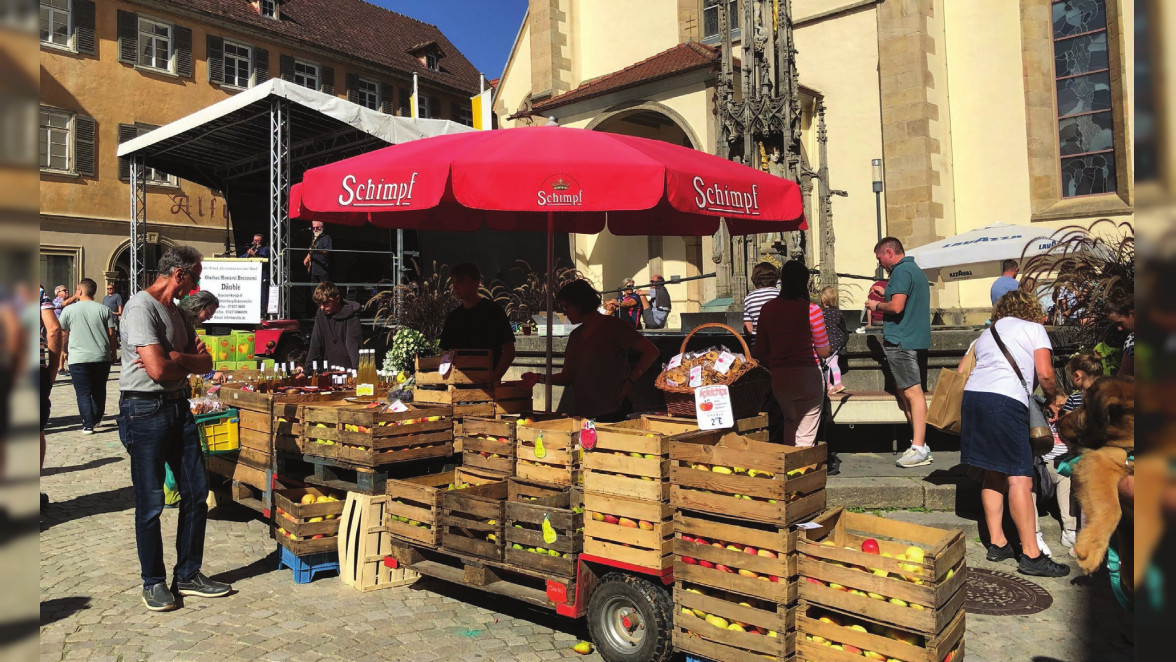 Von 11 bis 18 Uhr findet der Regionalmarkt mit Schwerpunkt rund um die Zehntscheuer statt. In der Königstraße, auf dem Marktplatz, in der Bahnhofstraße und dem Metzelplatz laden weitere Stände mit herbstlichen Angeboten zum Bummeln, Schauen und Stöbern ein.