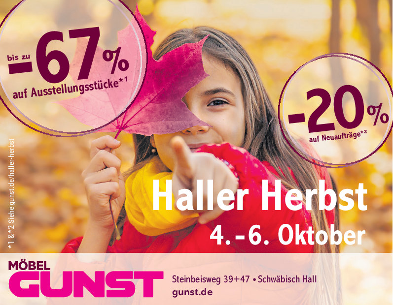 Der Herbst startet in Schwäbisch Hall mit einem großen Fest in der Innenstadt und den Handelszentren Ost, West und Kerz. Ein buntes Wochenende voller Stimmung und Unterhaltung für die ganze Familie steht dann bevor. Am 4. und 5. Oktober erwarten die Besucherinnen und Besucher abwechslungsreiche Shopping-Möglichkeiten, vielfältige Kulinarik und ein interessantes Veranstaltungsprogramm.