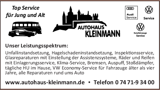 Das Autohaus Widmann bietet so nicht nur Reparaturen und die üblichen Service-Dienstleistungen am PKW an, sondern auch speziellen Service wie zum Beispiel die Getriebeölspülung an Automatikgetrieben, Kraftstoffsystemreinigungen, Einbau von Zubehör wie Standheizungen, Navigationsgeräten und Anhängerkupplungen, Autoglas, Unfallinstandsetzungen und Lackierung, Miet- und Ersatzwagen und Anhängerverleih. Es werden Neu- und Gebrauchtwagen vermittelt beziehungsweise verkauft und gebrauchte Fahrzeuge angekauft.