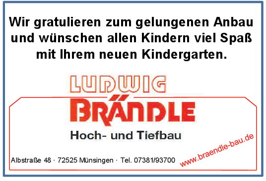 Er lobte die Art und Weise, wie im laufenden Betrieb die Baustelle zum „einmaligen Erlebnis“ für die Kinder wurde: „Sie waren ein Teil des Bauteams im aktiven Mitwirken und passiven Zuschauen. Das werden sie wohl ihr Leben lang in Erinnerung behalten.“ Auf diese Weise wurde das gesamte zweijährige Projekt zum pädagogischen Konzept, das auch in einem Bautagebuch mit Text und Bildern festgehalten wurde. Insgesamt 75 Kinder über drei Jahre finden nun im erweiterten und in die Zukunft ausgerichteten Kindergarten Platz: „Zum Entfalten, Toben, Lernen, Hören, Spüren, Essen und – wer will – zum Schlafen“. Denn auch ein Snoozle Raum wurde – eigentlich für die unter Dreijährigen – eingerichtet. Dafür gab es von Münzing die passende Snoozle Lampe als Geschenk. Die bisherige Einrichtung mit einer Größe von 400 Quadratmetern konnte durch die Erweiterung verdoppelt werden. Entstanden ist laut Münzing ein „Gesamtwerk wie aus einem Guss“, das von Bauleiter und Architekt Heiko Kuhn von der Stadt Münsingen geplant wurde und insgesamt 1,9 Millionen Euro gekostet hat.