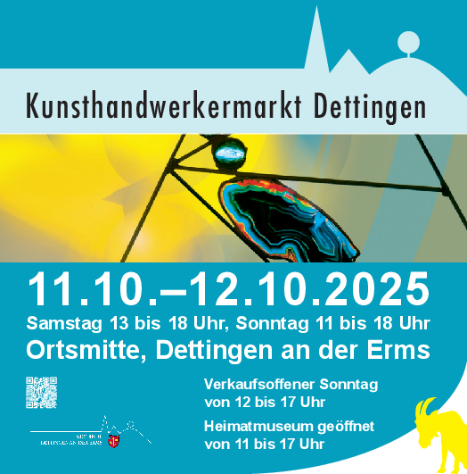 Es ist in jedem Jahr ein Ereignis, das Besucherinnen und Besucher aus dem weiten Umkreis nach Dettingen lockt: der Kunsthandwerkermarkt. In diesem Jahr findet er bereits zum 30. Mal statt. Mit knapp 80 Marktteilnehmern, darunter etwa 30 neue Aussteller, erwartet die Gäste in diesem Jahr ein umfangreiches Angebot, das die Vielfalt des Kunsthandwerks präsentiert.