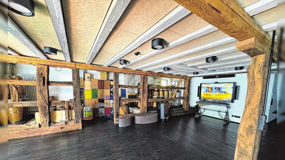 „Seit zweieinhalb Jahren besuche ich Musikhochschulen in China und unterrichte dort Musikpädagogik.“ Das hat ihm unheimlich Spaß gemacht. Aber er könne ja nicht die ganze Zeit nach China fliegen. Schon zu Corona-Zeiten hätten viele Veranstaltungen online stattfinden müssen. „Aber leider war oft die Übertragung schlecht oder die Musik wurde als Störgeräusch ganz herausgefiltert.“ Eine neue Technik musste her und das in dafür passenden Räumlichkeiten. Die fand Dietmar Leichtle im Nachbargebäude. Was früher ein Pferdestall war, dann als Gastronomie genutzt wurde und zuletzt leer stand, bildet nun die Räumlichkeit, die die Musikakademie für Online-Seminare in die ganze Welt nutzen kann. „Wir haben zwei große Räume, einen im Erdgeschoss und einen im ersten Stock. Beide haben Akustikdecken, vor allem sind sie aber mit großen Bildschirmen und modernster Technik perfekt für eine Musik-Übertragung gerüstet.“