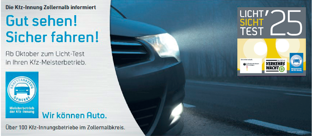Autofahren im Herbst und Winter ist an sich schon eine Herausforderung: Die Sicht ist mau, es wird früh dunkel. Experten raten deshalb, mindestens einmal im Jahr die Beleuchtung von Profis überprüfen zu lassen. Bequem möglich ist das beispielsweise im Oktober beim kostenlosen Licht-Sicht-Test vom Zentralverband Deutsches Kraftfahrzeuggewerbe und der Deutschen Verkehrswacht. Dabei werden Funktion und Scheinwerfereinstellung geprüft und Reparaturen auf Wunsch erledigt.