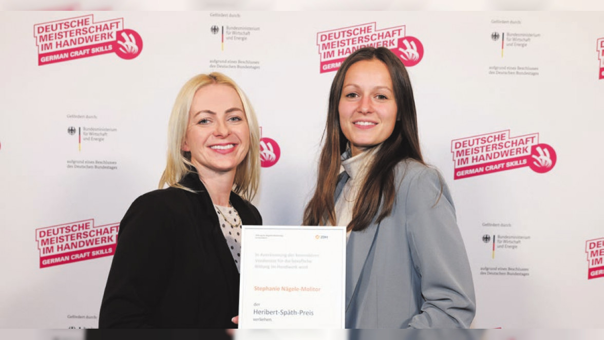 Stephanie Nägele-Molitor, Mitglied der Geschäfsleitung der Stahlbau Nägele GmbH aus Eislingen, wurde jüngst mit dem Heribert-Späth-Preis für besondere Ausbildungsleistungen im Handwerk ausgezeichnet. Der renommierte Preis wird seit 1997 jährlich von der Stiftung für Begabtenförderung im Handwerk vergeben und gilt als höchster Ausbildungspreis im deutschen Handwerk. Geehrt wird ihr herausragendes persönliches Engagement für Ausbildung und Nachwuchsförderung sowie ihr Beitrag, Ausbildungsqualität strukturiert, praxisnah und zukunftsorientiert weiterzuentwickeln. Die Jury würdigte dabei ein Konzept, das weit über einzelne Maßnahmen hinausgeht und Ausbildung als langfristige Investition in Fachkräfte, Kultur und Verantwortung versteht.