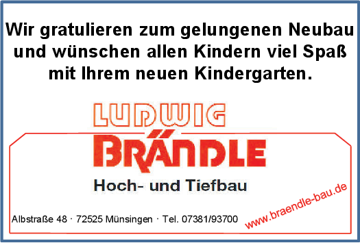 950.000 Euro investierte die Stadt Münsingen insgesamt in die neue Kinderkrippe. Pro Betreuungsplatz konnten 13.200 Euro Fördergelder beansprucht werden.