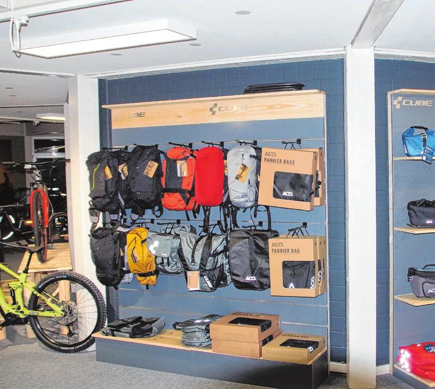 Heute zählt das hochmotivierte Team von Transvelo um die 80 Mitarbeiter – und das freut sich auf Kunden, die im neuen Cube eine riesige Produktpalette erwartet. Das breitgefächerte Angebot umfasst neben nahezu allen Produkttypen im E-Bike- und Bike-Bereich auch eine sehr große Bekleidungs- und Zubehörkollektion – von Helmen über Schutzbleche, Rucksäcke, Fahrrad- und Packtaschen bis hin zu Luftpumpen und Sicherheitsschlössern.