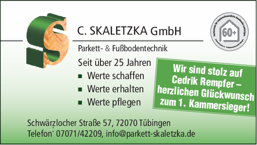 ▪ Parkettleger Cedrik Rempfer in 72116 Mössingen bei C. Skaletzka GmbH in 72070 Tübingen