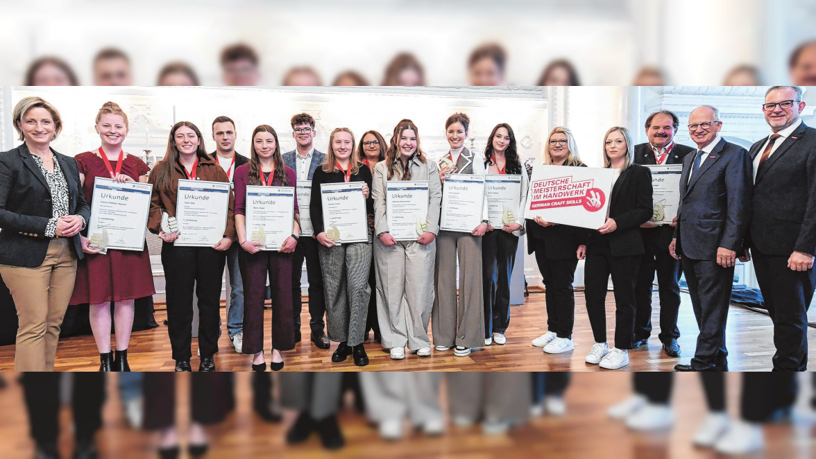 Am Samstag, 8. November, wurden im Weißen Saal des Neuen Schlosses in Stuttgart die Landessiegerinnen und Landessieger der Deutschen Meisterschaft im Handwerk ausgezeichnet. Und auch in diesem Jahr hat der handwerkliche Nachwuchs aus der Region eindrucksvoll bewiesen, dass er landesweit Spitzenklasse ist. Zwölf junge Menschen aus dem Kammerbezirk der Handwerkskammer Reutlingen wurden beim Festakt in ihrem jeweiligen Gewerk zu Landessiegerinnen und Landessiegern gekürt. Ergänzt wird dieses starke Ergebnis durch zehn zweite und acht dritte Plätze auf Landesebene. 16 junge Handwerker und 14 junge Handwerkerinnen schafften somit den Sprung auf das Siegertreppchen. Diese nahezu ausgeglichene Bilanz zwischen Frauen und Männern zeigt eindrucksvoll, dass handwerkliches Können und Spitzenleistungen längst keine Frage des Geschlechts und des Gewerks sind mehr sind. Sie unterstreicht vielmehr, wie vielfältig und chancengleich das moderne Handwerk heute aufgestellt ist. Im parallel stattfindenden Gestaltungswettbewerb „Die gute Form im Handwerk“, der in rund 40 Gewerken ausgetragen wird, gingen außerdem zwei erste Preise an eine Maßschneiderin und einen Goldschmied, ein zweiter Preis ebenfalls an eine Maßschneiderin.
