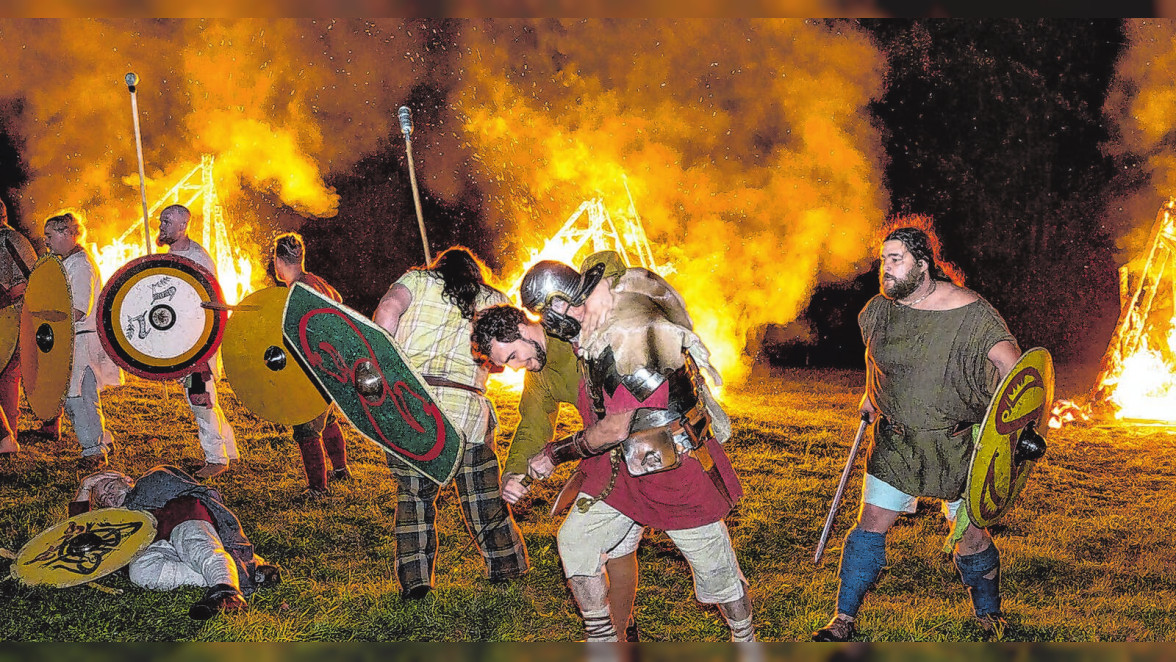 Am Samstag, nach Einbruch der Dunkelheit, wird ein Fackelumzug der historischen Gruppen für Gänsehaut mit rund 170 Darstellern aus Deutschland, der Schweiz, Österreich, Frankreich und Italien sorgen. Bei der nächtlichen Schlacht der Römer gegen Alamannen und Kelten wird der Scorpio der Gruppe Secunda Raetorum, ein rekonstruiertes römisches Pfeilgeschütz, Brandpfeile abfeuern. Der Verein hat eigens Kulissen aus Holz und Stroh aufgebaut, auf die geschossen wird. Es darf mit Spannung erwartet werden, ob es gelingt, die Ziele in lodernden Flammen aufgehen zu lassen. Den feurigen Abschluss bildet die Feuershow der Schwabenritter.