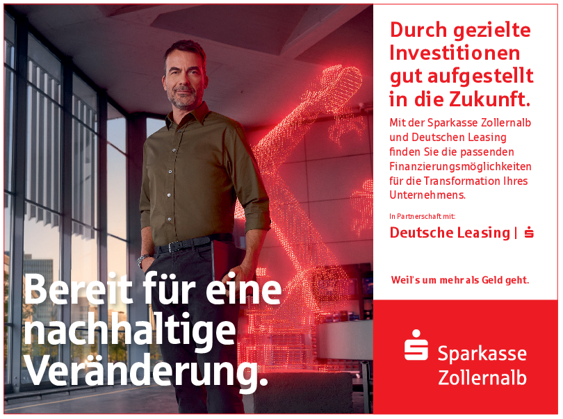 Oliver Göder von der Sparkasse Zollernalb empfiehlt: „Finanzieren Sie nachhaltige Investitionen mit klarem Rahmen.“ Das Kreditinstitut unterstützt Unternehmen dabei mit dem S-Transformationskredit.