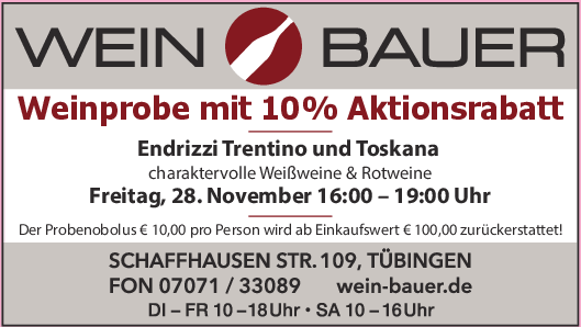 Der Black Friday bietet in Tübingen jedoch nicht nur die Gelegenheit, günstig Kleidung oder Technik zu ergattern. Zahlreiche Feinkostläden, Bäckereien und Cafés laden dazu ein, sich eine kleine Auszeit vom Shopping zu gönnen. Mit besonderen Aktionen - etwa Gratisproben, Rabatten auf ausgewählte Spezialitäten oder saisonalen Menüs - machen sie den Einkaufstag auch kulinarisch zu einem Erlebnis.