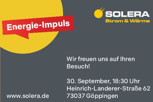 Am Dienstag, den 30. September, um 18. 30 Uhr im Firmengebäude von Solera, Heinrich-Landerer-Straße 62, 73037 Göppingen