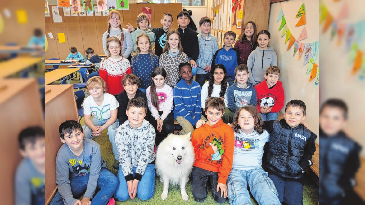 Am Mittwoch, 10. Dezember 2025, besuchte der Schulhund Baro die Klasse 4b. Er lief durch das Klassenzimmer und beschnupperte alle Schülerinnen und Schüler, um sie kennenzulernen.