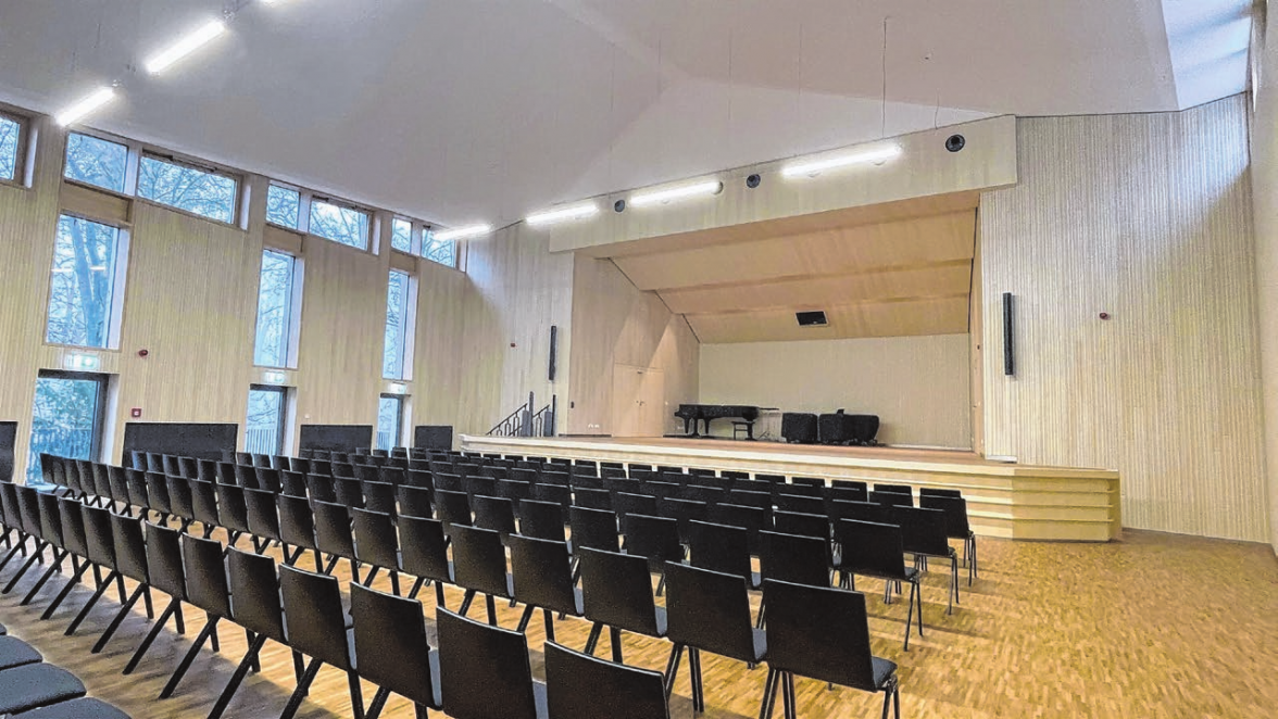 Im Marc-Kemmler-Saal, der ehemaligen Aula, finden 200 Zuhörerinnen und Zuhörer Platz, während die Bühne mit vergrößerter Fläche Raum für das komplette Sinfonieorchester der Musikschule bietet.