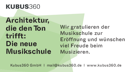 Am Samstag, 6. Dezember, haben alle Interessierten die Möglichkeit, sich die Musikschule anzusehen – und sie zu erleben. Nach dem offiziellen Festakt werden von 12 bis 13 Uhr Führungen durch die Räumlichkeiten angeboten. In den Unterrichts- und Gruppenräumen kann man dabei nicht nur erleben, wie beeindruckend schön alles geworden ist: Es wird auch ein musikalischer Rundgang, in dem sich Schülerinnen und Schüler sowie einige der 28 Ensembles der Musikschule musikalisch präsentieren. Ghita Kramer-Höfer