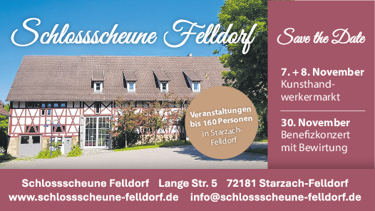 Daniela Mayer, die ihre Gäste selbst bekocht und auf saisonale Produkte aus der Region setzt, betont, dass ihre Location keine festen Öffnungszeiten habe und nur gebucht und reserviert werden könne. Nur einmal im Monat ist die Felldorfer Schlossscheune für die Öffentlichkeit zum abendlichen Dinieren und für ein reichhaltiges Frühstücksbuffet geöffnet. Außer dem Restaurantbetrieb finden kulturelle Veranstaltungen statt, wie zum Beispiel am Sonntag, 30. November 2025, um 18.30 Uhr (Einlass ab 17.30 Uhr) ein Benefizkonzert mit Bewirtung zur Einstimmung auf den Advent mit großem Projektchor und Musikensembles.