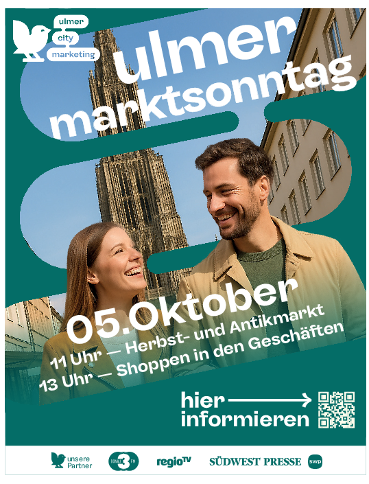 Auf der Münsterplatz-Showbühne präsentiert der Turngau Ulm gemeinsam mit den Turnvereinen aus Ulm und der Region die Vielfalt und Energie des Turnsports. Ein besonderes Highlight: Um 12 Uhr startet die Kinder-Entspanntes Sonntags-Shopping mit vielen Highlights in der Ulmer Innenstadt Shoppen, bummeln und genießen: Am Sonntag, 5. Oktober 2025, verwandelt sich die Ulmer Innenstadt wieder in ein herbstliches Erlebnis für die ganze Familie. Herbstmarkt, Antikhändler und Kunsthandwerker freuen sich auf zahlreiche Besucher. disco mit Fratz, dem Ulmer City Spatz. Spaß und Bewegung sind hierbei garantiert.