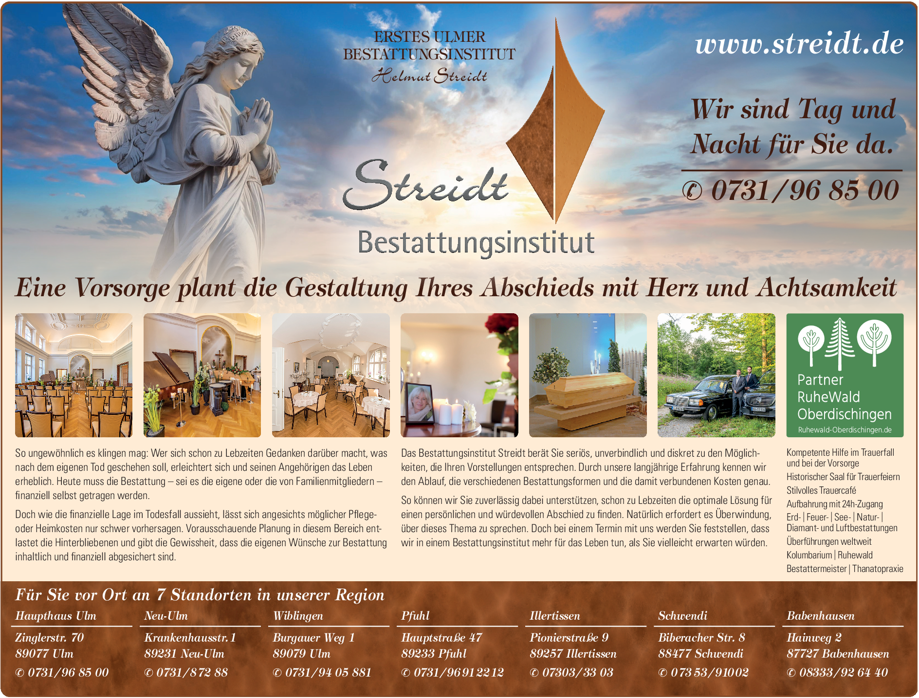 Es gibt zwei Möglichkeiten zur finanziellen Absicherung: den Bestattungsvorsorgetreuhandvertrag oder eine Sterbegeldversicherung. Was für einen infrage kommt und Sinn macht, erfährt man am besten in einem Gespräch mit dem Bestattungsunternehmen. Bestattungsvorsorge bedeutet finanzielle Sicherheit, die Entlastung der Angehörigen und die Wahrung eigener Wünsche. Eine frühzeitige Planung erleichtert den Abschied für Hinterbliebene und schafft Klarheit in einer belastenden Zeit. Wer vorsorgt, übernimmt Verantwortung – für sich selbst und für seine Familie. Der Friedhof hat vieles, was andere Bestattungsorte nicht haben: Ein Friedhof ist ein gewachsener Ort. Er dient als Ort der Bestattung für die Verstorbenen und als Gedenkstätte für die Hinterbliebenen. Wer durch das Tor zu einem Friedhof tritt, spürt sofort: Hier bin ich ganz für mich in einem geschützten Raum. Ruhe, Frieden und Stille sind hier vorherrschend. Hier dürfen die Hinterbliebenen ganz und gar eins mit den Erinnerungen, dem Gedenken und der Trauer sein.